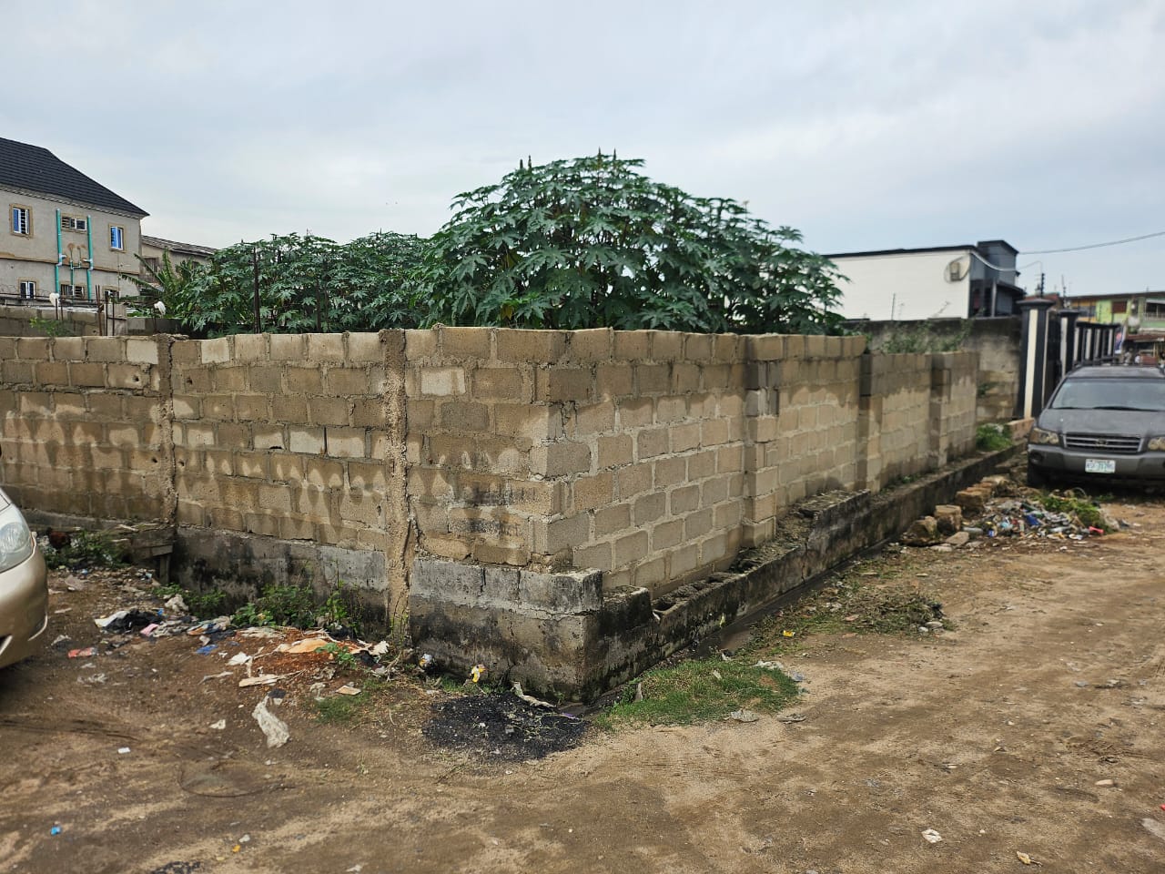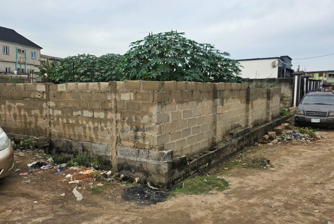 A portion of half plot of dry land measuring about 200sqm fully fenced round with German floored foundation on a street off Doyin Omololu street, Alapere, Ketu.